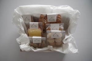 awaiで定番の焼き菓子6種類を詰め合わせました。 ・ウィークエンドシトロン ・チーズとローズマリーのクッキー ・ペパーミントとレモンのサブレ ・木苺のポルボローネ ・くるみとシナモンのクッキー ・ビスコッティ 手土産や贈り物はもちろん、自分へのギフトなど、それぞれの楽しい時間にお役立てください。 【賞味期限について】 ウィークエンドシトロンのみ2026/4/4まで、 その他の焼き菓子は2026/4/13または2026/4/15までの期限です。
